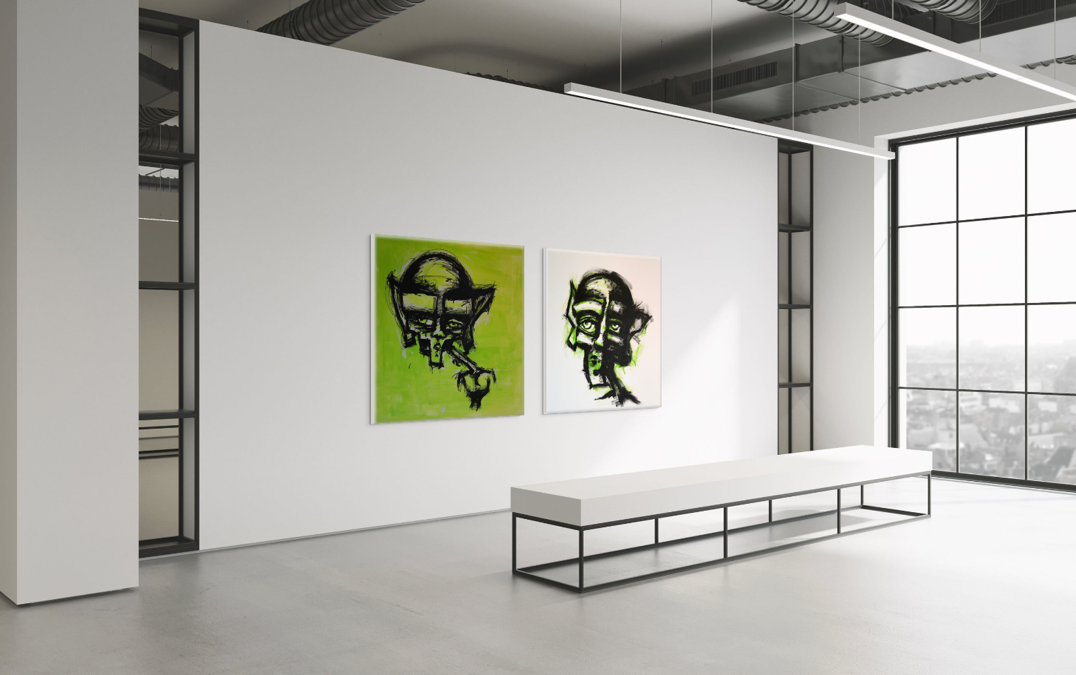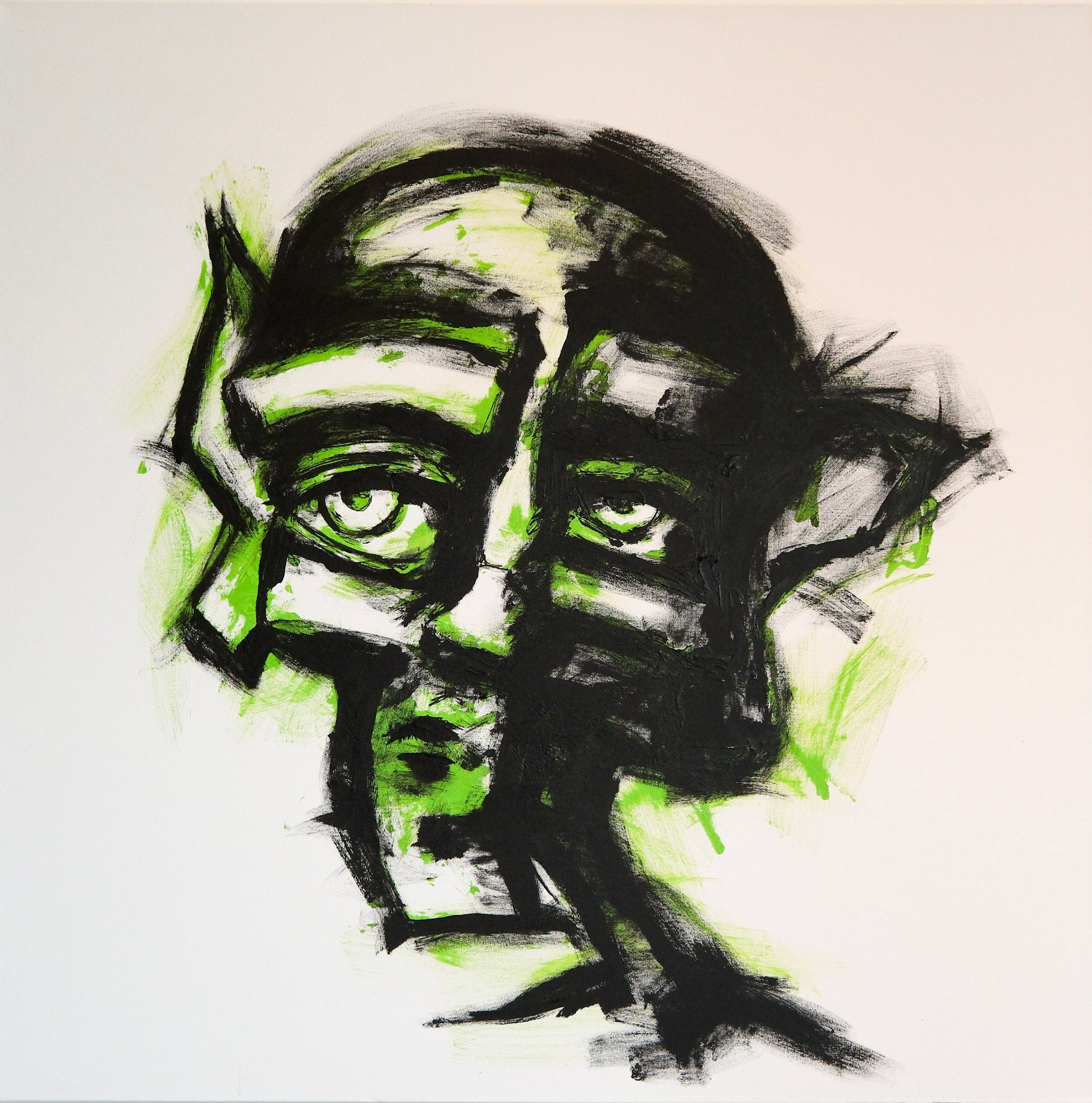 Original Art By Jeremy Soares, Part of a 3 piece series of coloured Faces on white canvas. (48 x 48 )