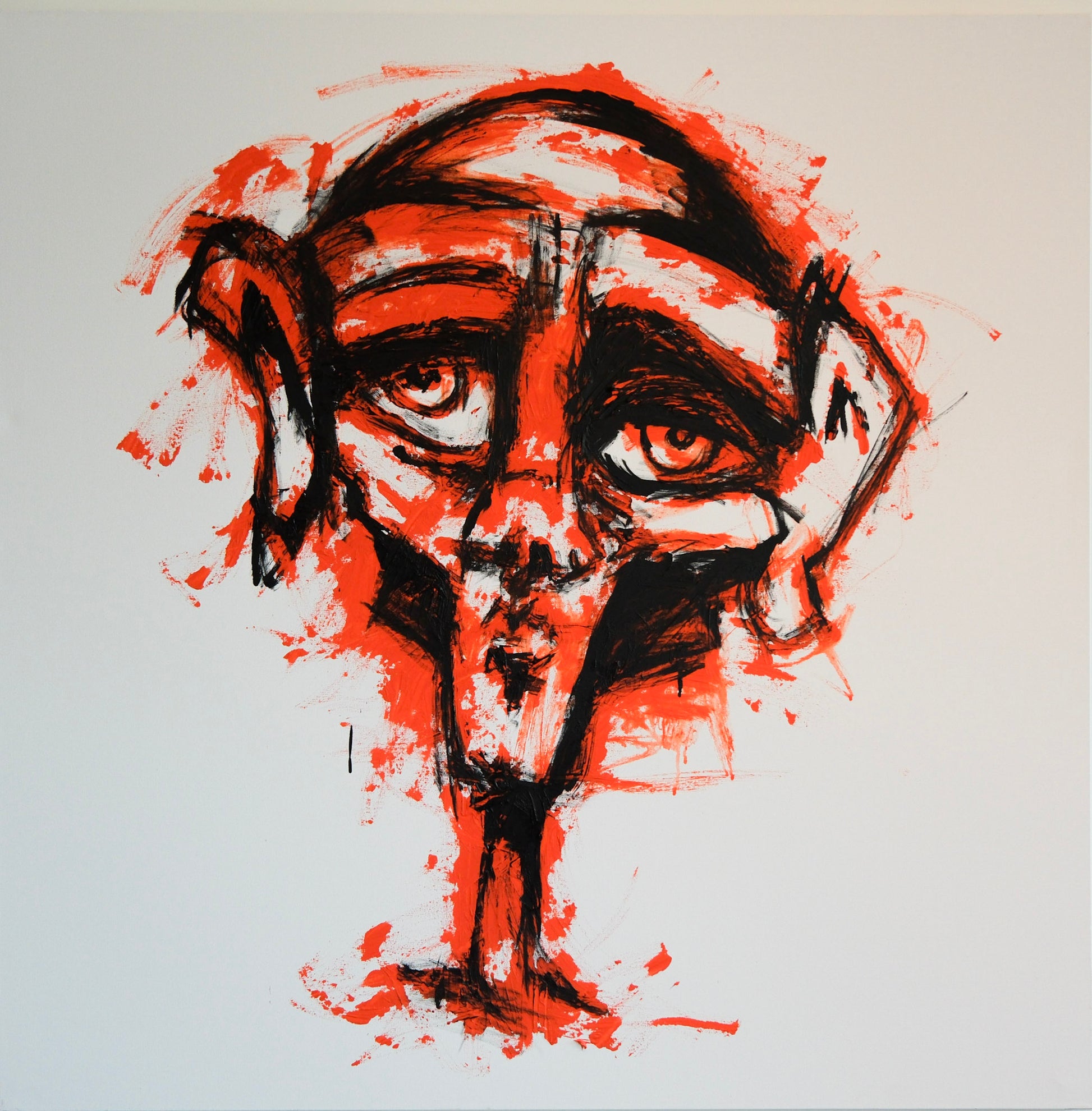 Original Art By Jeremy Soares, Part of a 3 piece series of coloured Faces on white canvas. (48 x 48 )