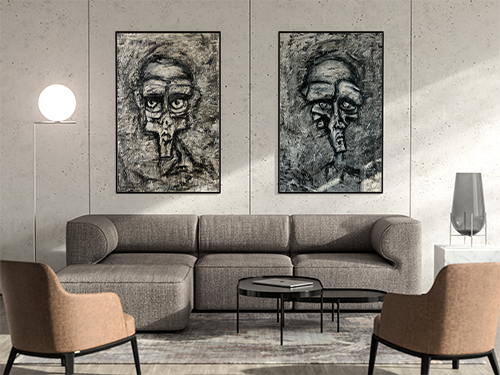 Original Art By Jeremy Soares, Part of a 2 piece series of two B&W Faces