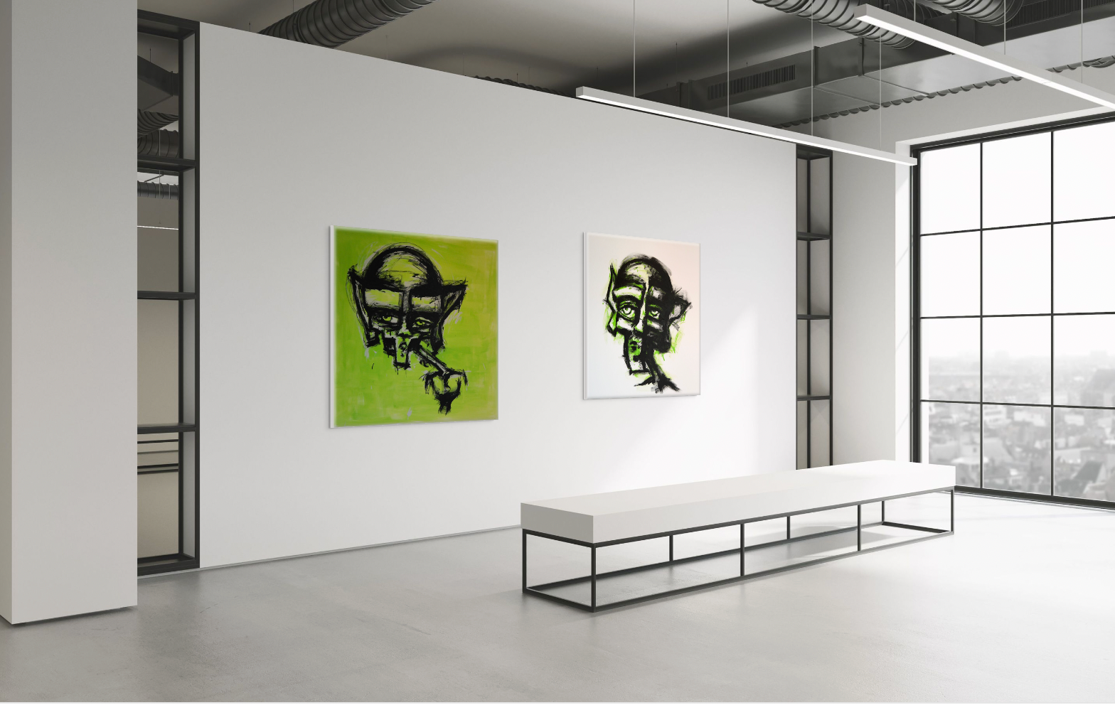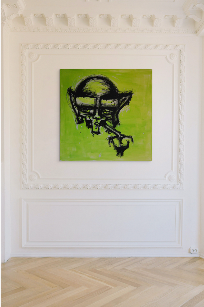 Original Art By Jeremy Soares, Part of a 3 piece series of Yellow, Orange & Green Faces. (48 x 48 )