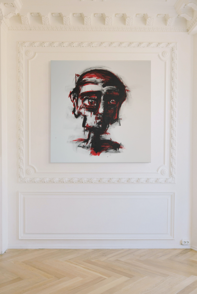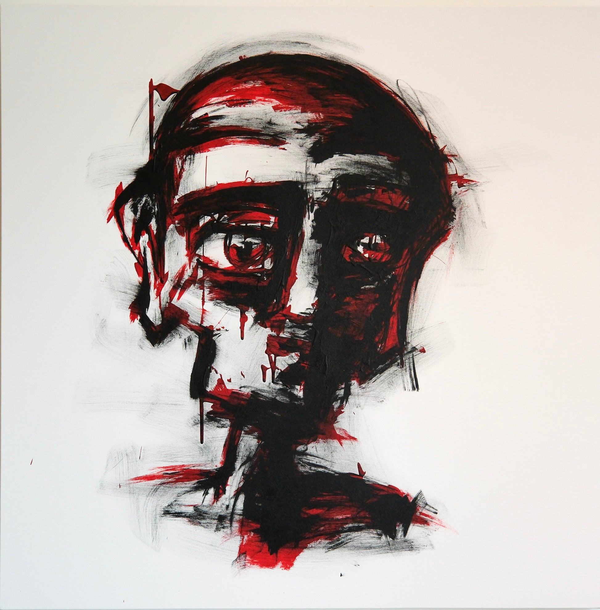 RED Original Art By Jeremy Soares, Part of a 3 piece series of coloured Faces on white canvas. (48 x 48 )